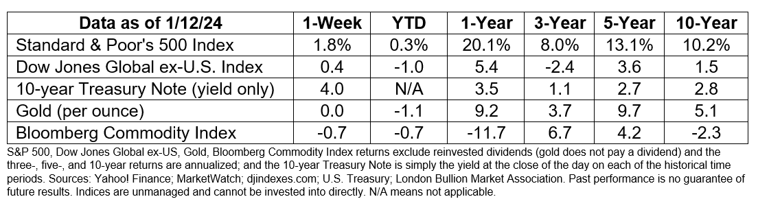 - Headline inflation, as measured by the Consumer Price Index, suggested inflation was headed in the wrong direction last month – higher. It showed prices rising more than expected (0.3 percent, month-to-month) in December 2023. In November, prices rose less (0.1 percent, month-to-month).