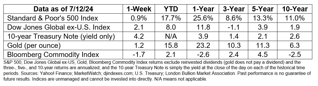 Over the weekend, after this commentary was written, there was an attempt to assassinate former President Donald Trump. We condemn this senseless act. We will stay alert to how this affects financial markets.