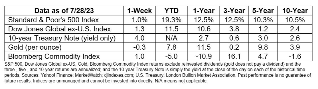 Last week, major U.S. stock indices finished higher, reported Barron’s. Yields on short U.S. Treasuries finished the week above 5 percent and most longer maturity Treasuries offered yields above 4 percent. The exception was the benchmark 10-year U.S. Treasury.